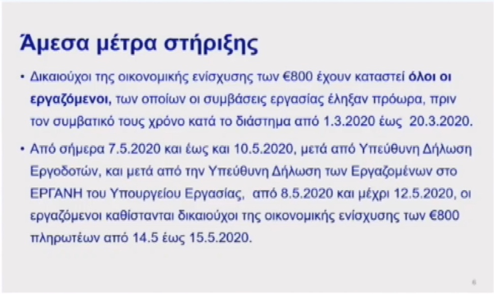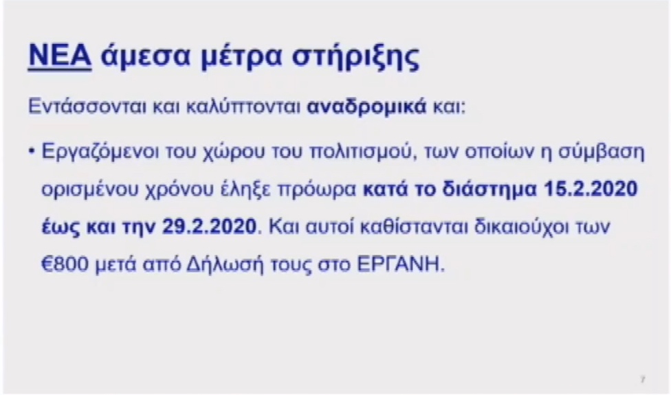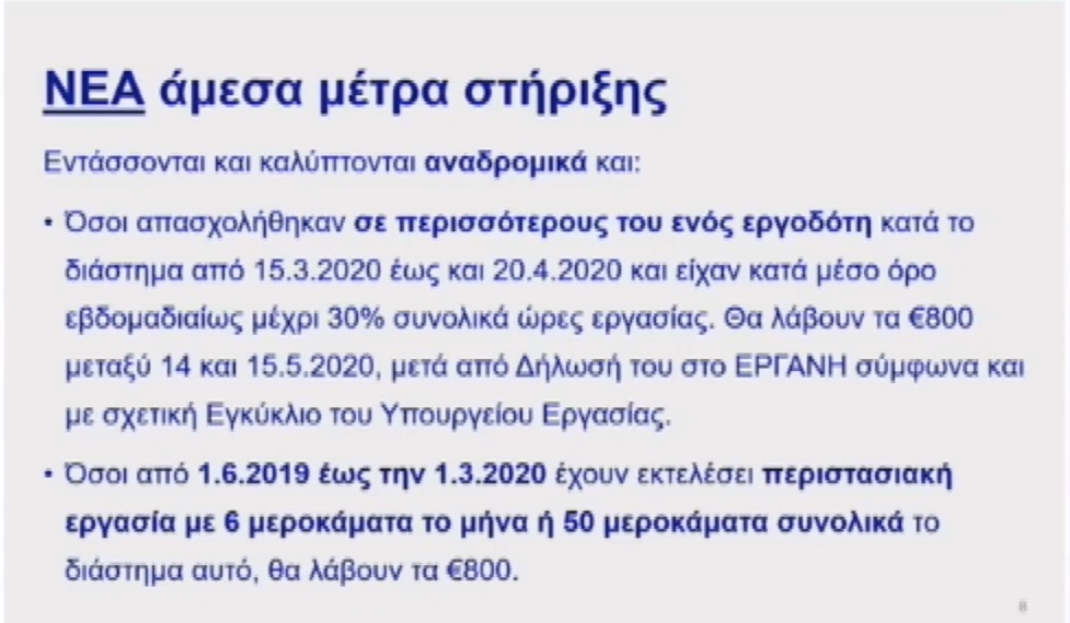 Για την αναδρομική επέκταση των δικαιούχων των 800 ευρώ, ανέφερε ότι δικαιούχοι είναι:
