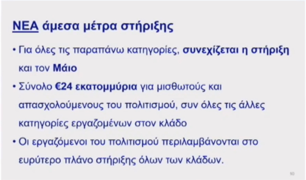 Τα μέτρα στήριξης του Πολιτισμού και των εργαζομένων του