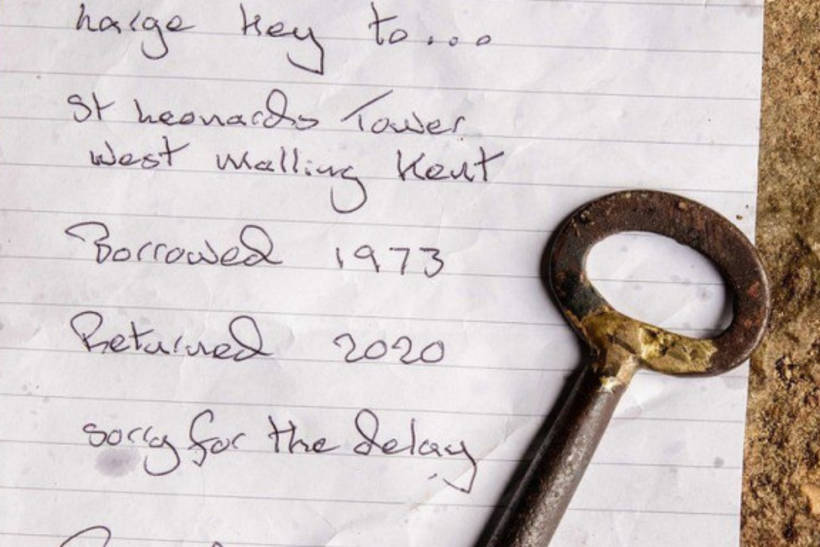 Ο ανώνυμος αποστολέας έστειλε ταχυδρομικώς το μεγάλο αντικείμενο στον φιλανθρωπικό οργανισμό English Heritage και παραδέχτηκε στην επιστολή ότι το κλειδί το είχαν «δανειστεί» το 1973...