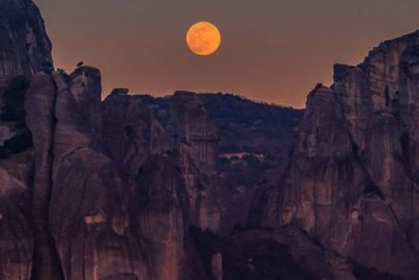 Η μαγεία του αποψινού φεγγαριού πάνω από τους επιβλητικούς βράχους των Μετεώρων σε ταξιδεύει στις γειτονιές του σύμπαντος
