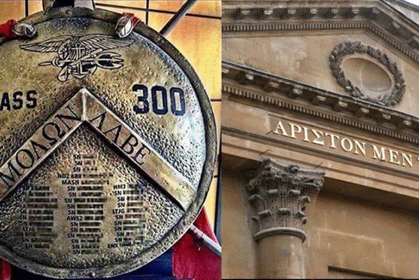1. Το έμβλημα της 300ης σειράς των «βατραχιών» της Αμερικής (US NAVY SEALS), είναι, όπως βλέπετε στην εικόνα Ελληνικό 2. Στο πανεπιστήμιο του Τέξας υπάρχει ένα από τα σημαντικότερα αποφθεγματα του Δημό…