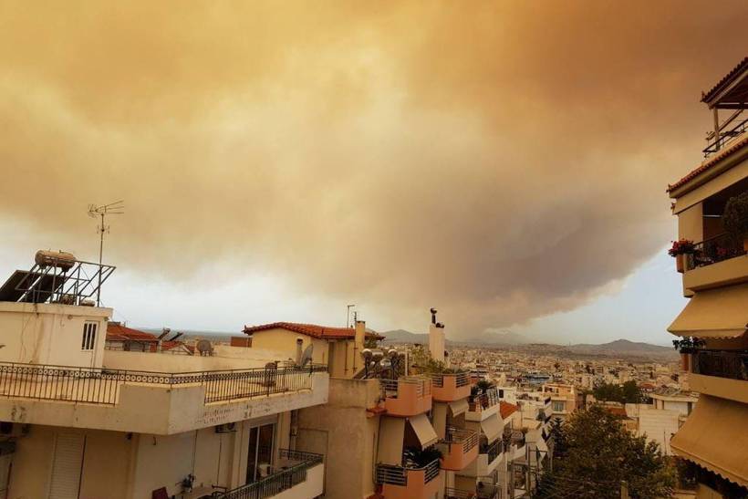 Στην περιοχή πνέουν ισχυροί άνεμοι και οι φλόγες καίνε πευκοδάσος